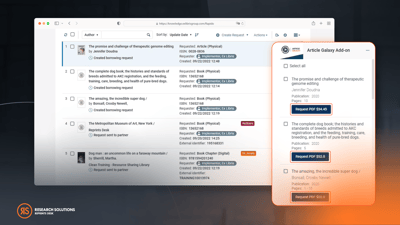 Research Solutions' Article Galaxy Cloud App Integrates with Ex Libris' Resource-Sharing Solution, Rapido